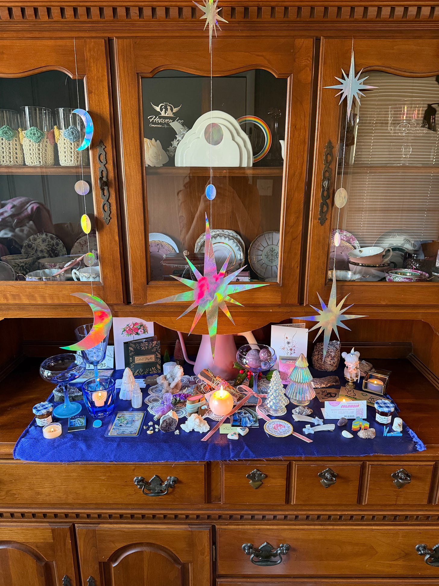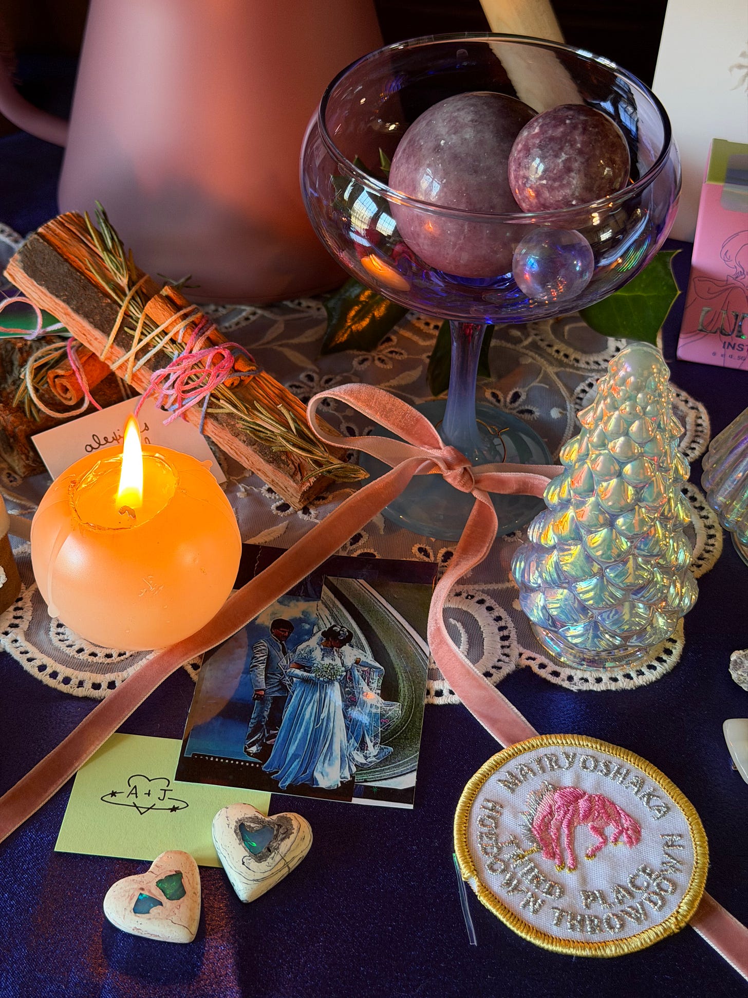 on yule, I built my altar. we walked the tinsel trail for five minutes. I rested. that was enough this year.